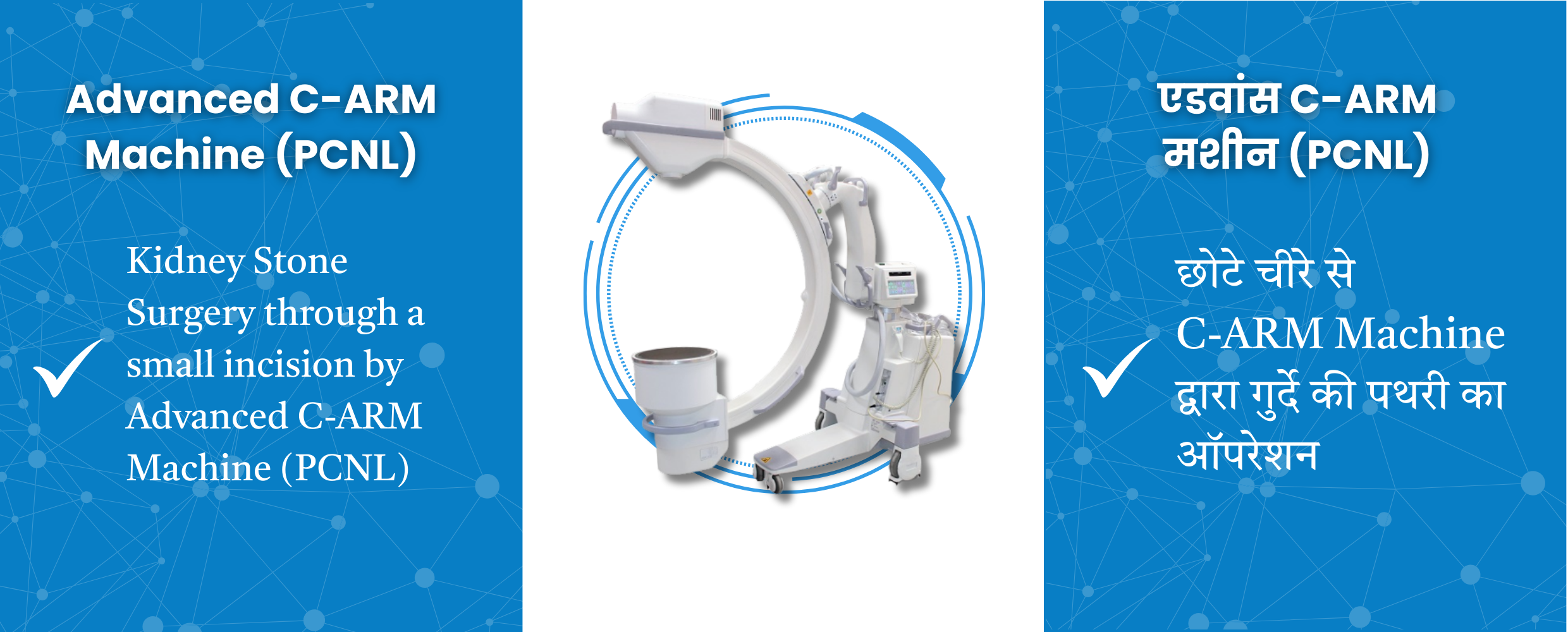 With the C-ARM system, patients benefit from safer surgeries, smaller incisions, less pain, and faster recovery. This technology ensures precise outcomes and reduces complications, allowing for effective and comfortable kidney stone treatment.