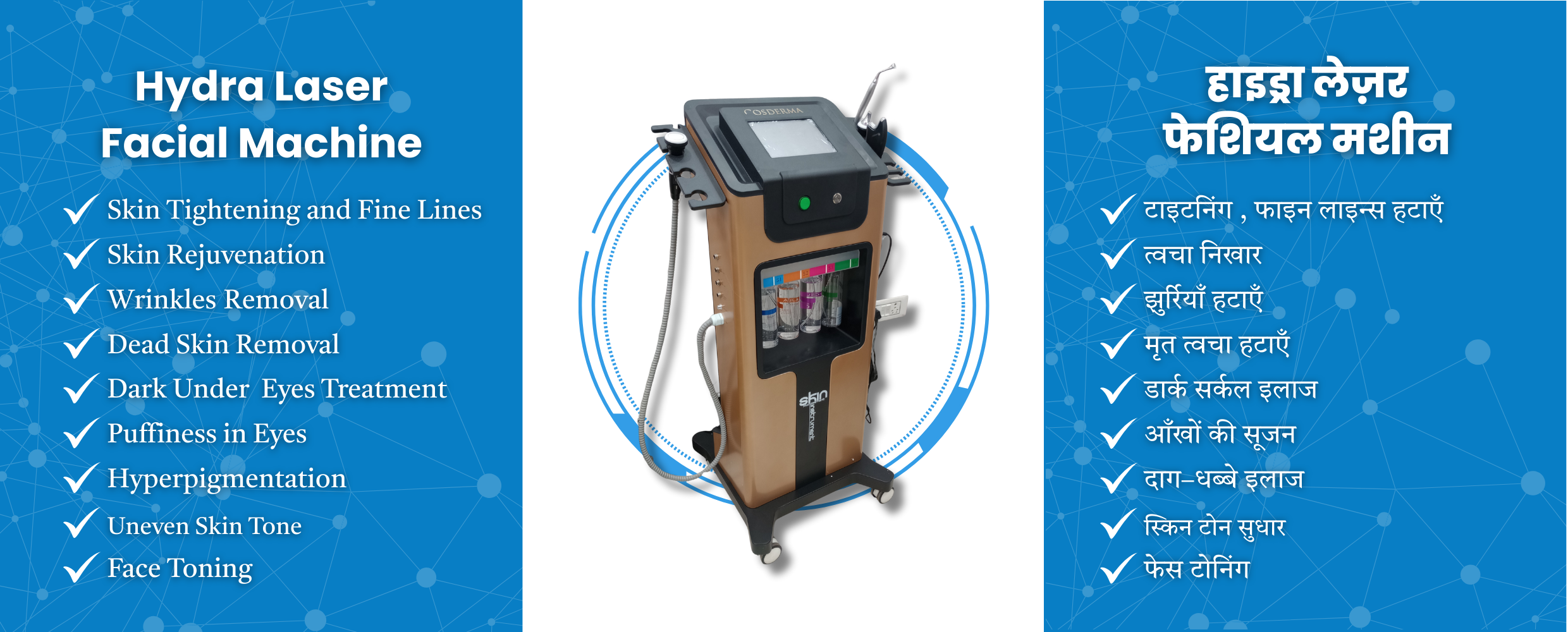 The Hydra Laser Facial Machine is a revolutionary device designed for skin rejuvenation and deep facial cleansing. Unlike traditional facials, it uses a patented vortex suction technology to cleanse pores, exfoliate dead skin cells, extract impurities, and infuse the skin with essential serums.
