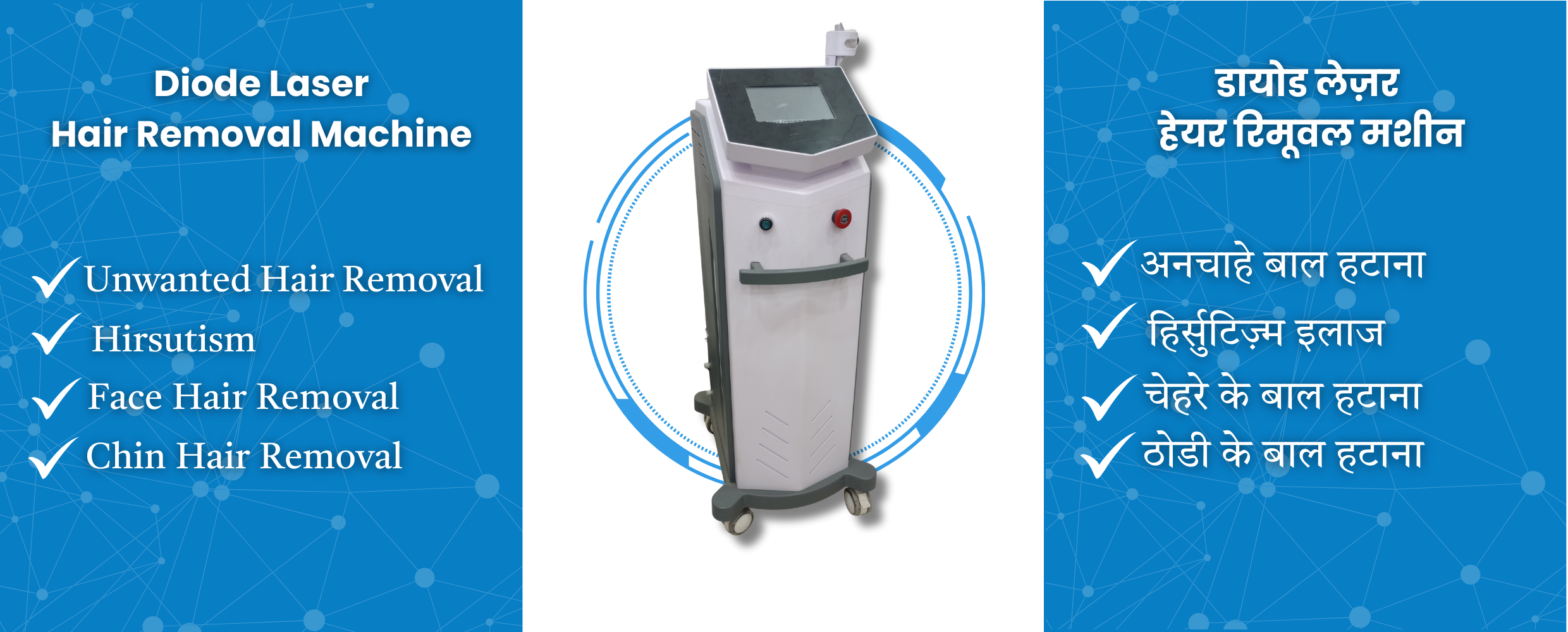The Diode Laser is considered the gold standard in permanent hair reduction. It works by targeting the melanin pigment in hair follicles, destroying them at the root without harming the skin.