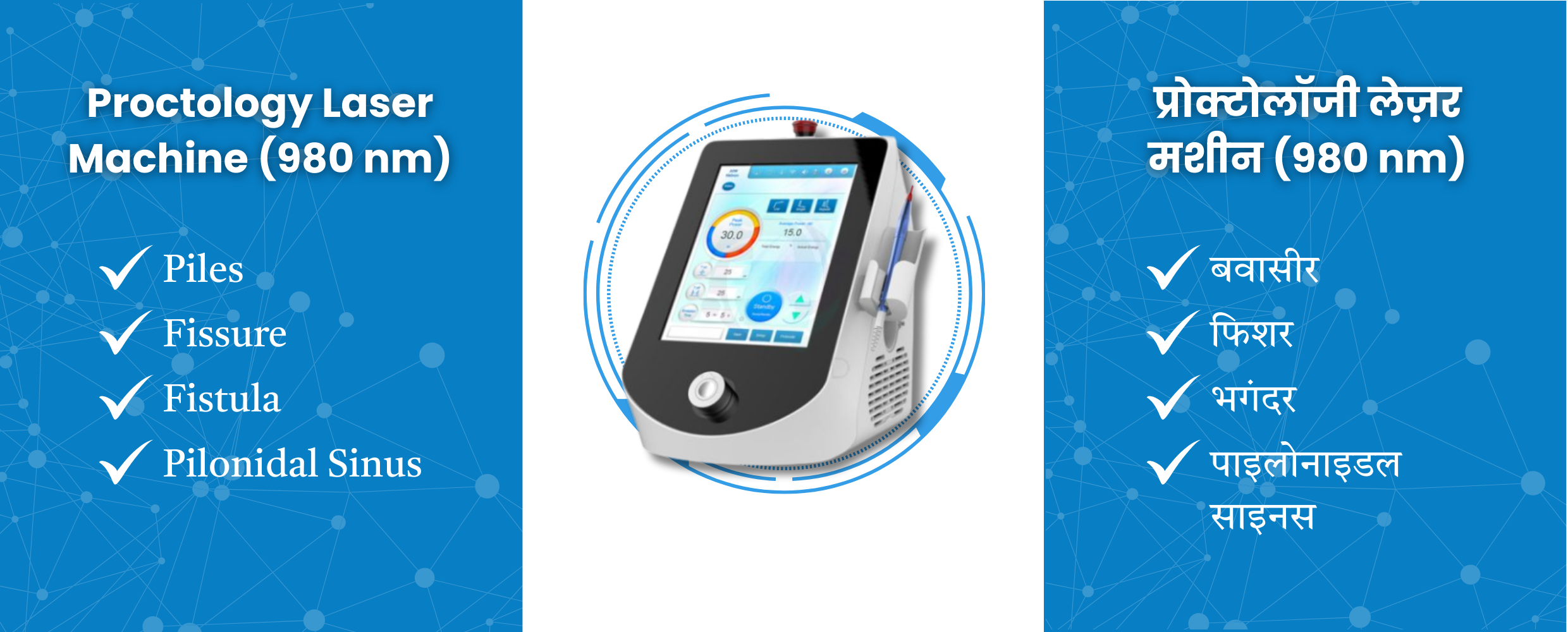 Treats piles, fissure, fistula, and pilonidal sinus with pinpoint laser precision